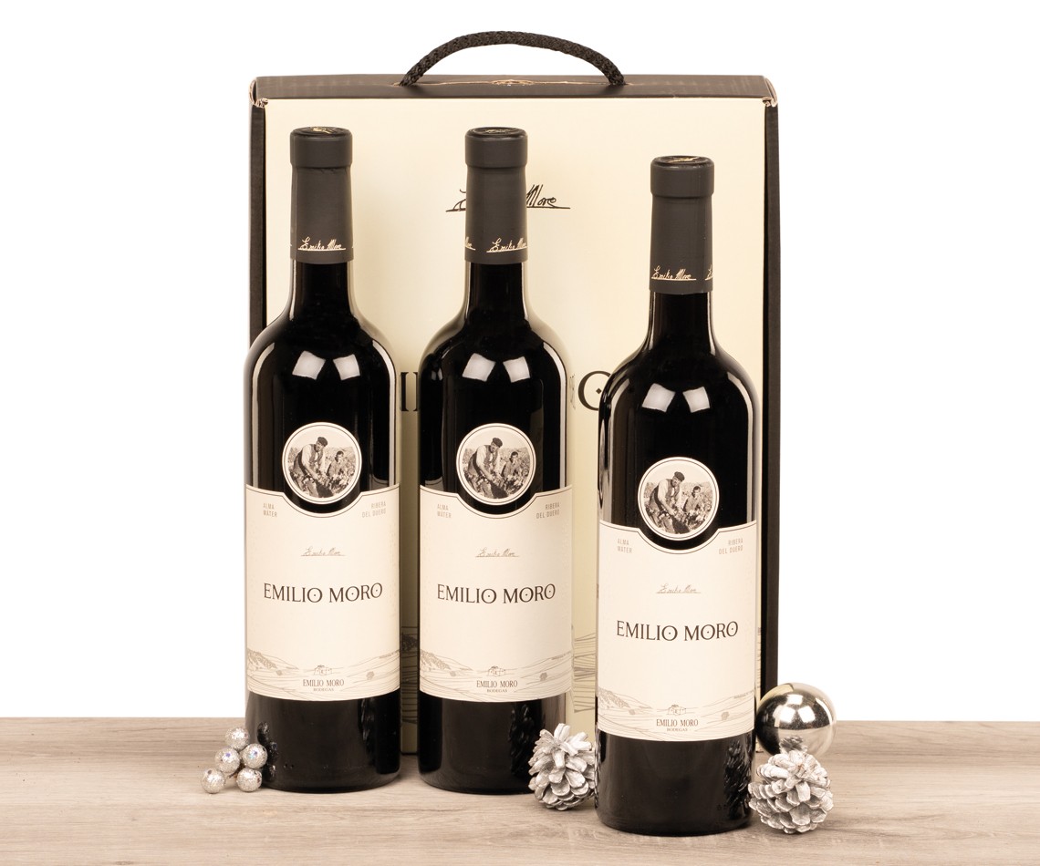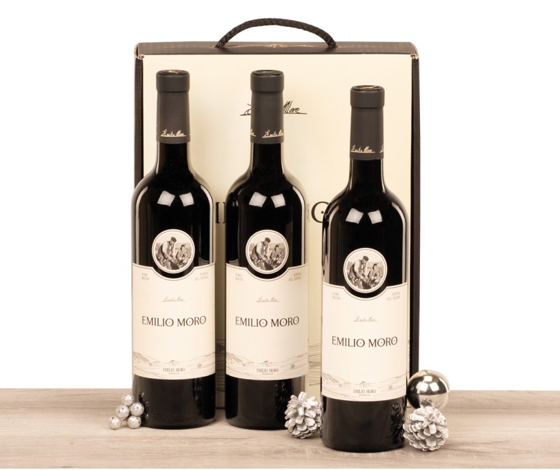 1 Estuche 3 botellas de vino D.O. Ribera del Duero EMILIO MORO 12 meses en barrica
