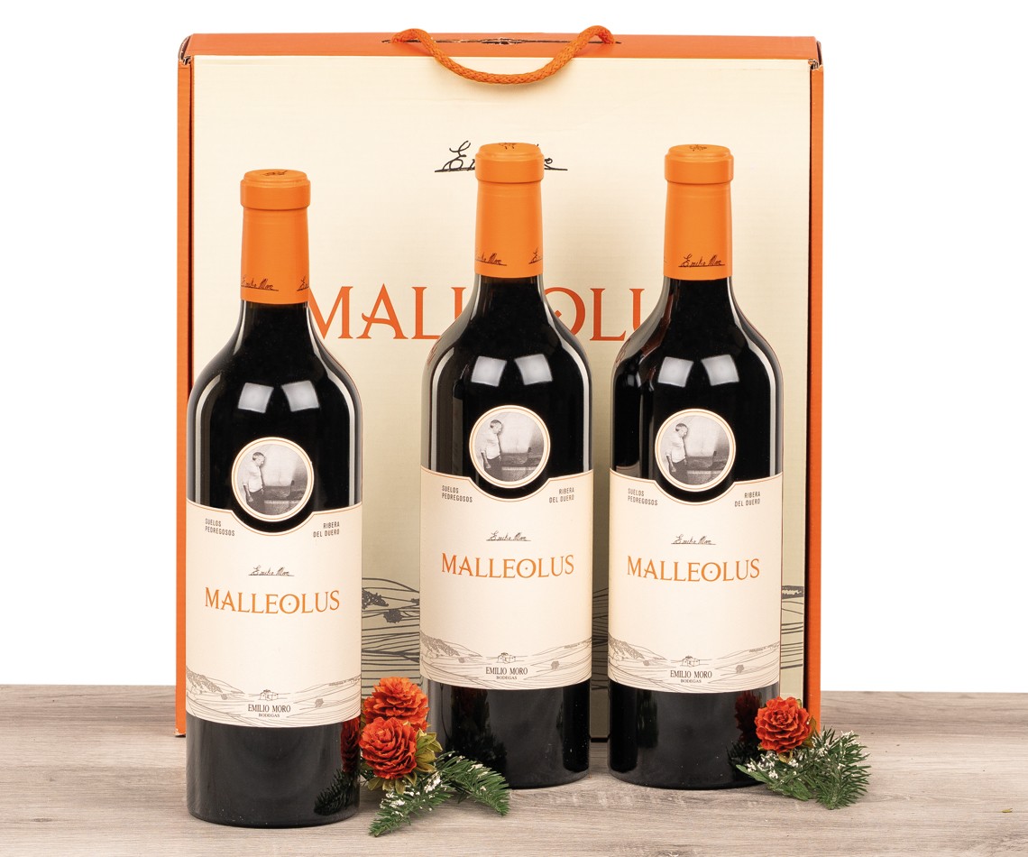 1 Estuche 3 botellas de vino D.O. Ribera del Duero MALLEOLUS