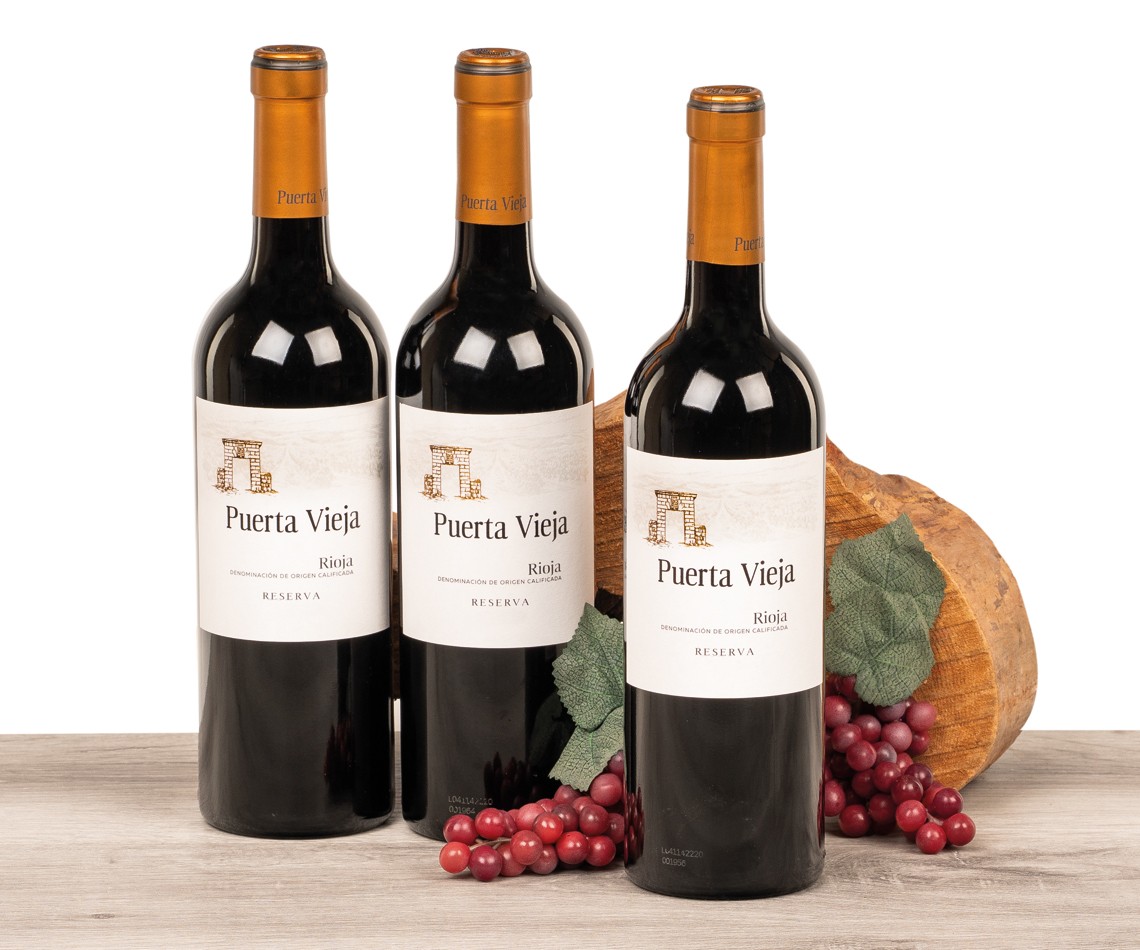 1 Estuche 3 botellas de vino D.O. Rioja PUERTA VIEJA reserva